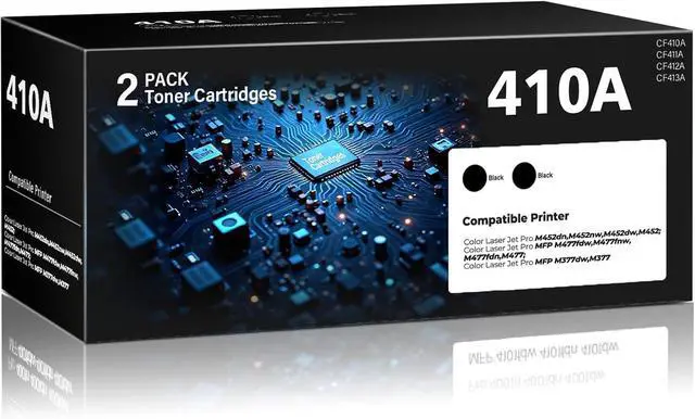 Package Included: 410A toner cartridges 2 pack compatible for HP 410A toner cartridges contains 2 x 410A Black toner(CF410A)
