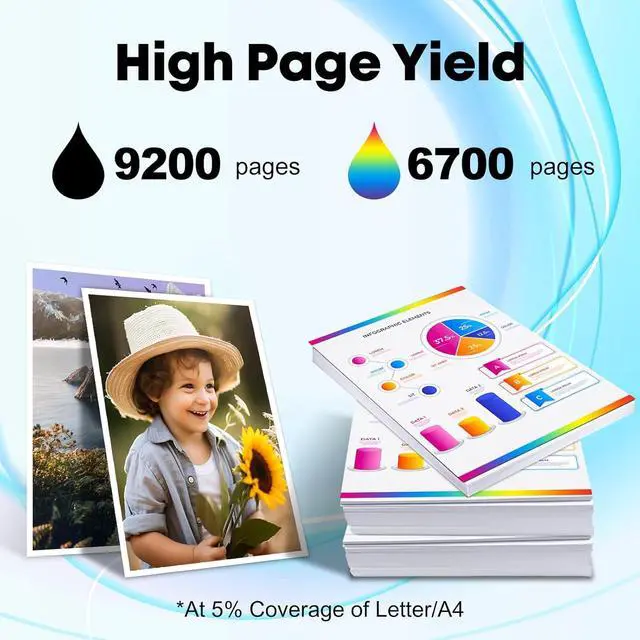 High Page Yield: About 9200 pages per 970xl black, 6600 pages per compatible hp 971xl color ink cartridge (5% coverage)
