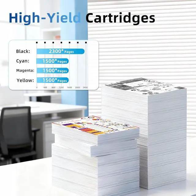 High Page Yield: Up to 2,300 pages per Black & 1,500 pages per Color Ink Cartridge (at 5% coverage, Letter/A4)