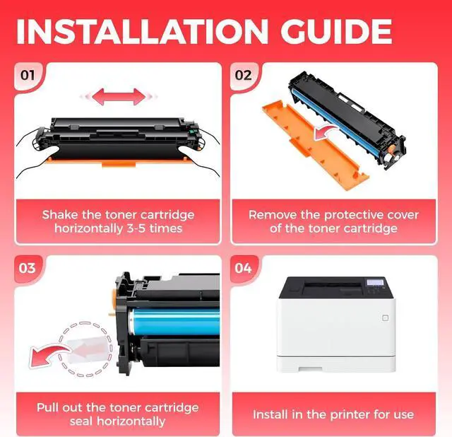 The latest chip version: The JCTONER toner cartridges are equipped with the latest version of built-in chips, ensuring perfect compatibility between each toner cartridge and the printer. This enables you to print efficiently while maintaining stability and reliability, making installation convenient without the need for manual adjustments. All JCTONER toner cartridges have undergone strict quality testing and have obtained ISO9001 certification. High-quality toner cartridges can meet the demand for high printing volume. The fine toner ensures clear and stain-free printing results and extends the lifespan of the printer. You can purchase with confidence.