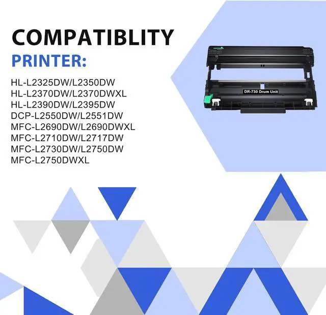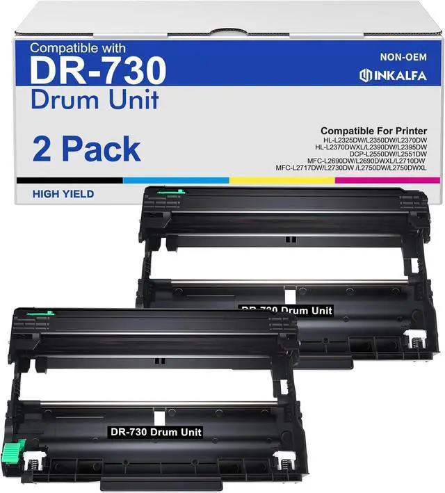 • Included: 2 pack High Yield DR730 DR-730 DR 730 Drum Unit compatible for for MFC-L2710DW MFC-L2750DW HL-L2395DW HL-L2370DW HL-L2350DW HL-L2390DW DCP-L2550DW MFC-L2750DWXL Printer