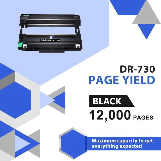 • Page Yield: 12,000 pages per DR730 DR-730 Drum Unit (Letter/A4, at 5% coverage)