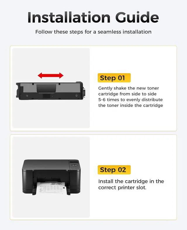 The latest chip version: The JCTONER toner cartridges are equipped with the latest version of built-in chips, ensuring perfect compatibility between each toner cartridge and the printer. This enables you to print efficiently while maintaining stability and reliability, making installation convenient without the need for manual adjustments. All JCTONER toner cartridges have undergone strict quality testing and have obtained ISO9001 and ISO14001 certification. High-quality toner cartridges can meet the demand for high printing volume. The fine toner ensures clear and stain-free printing results and extends the lifespan of the printer. You can purchase with confidence.