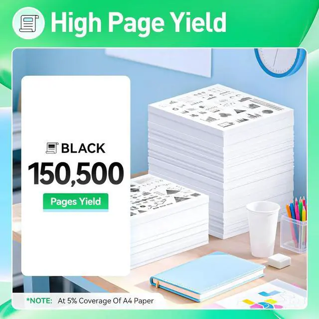 High-Yield: up to 150,500 pages per 58D0Z00 Drum Unit (Total 150,500 pages, 5% coverage).