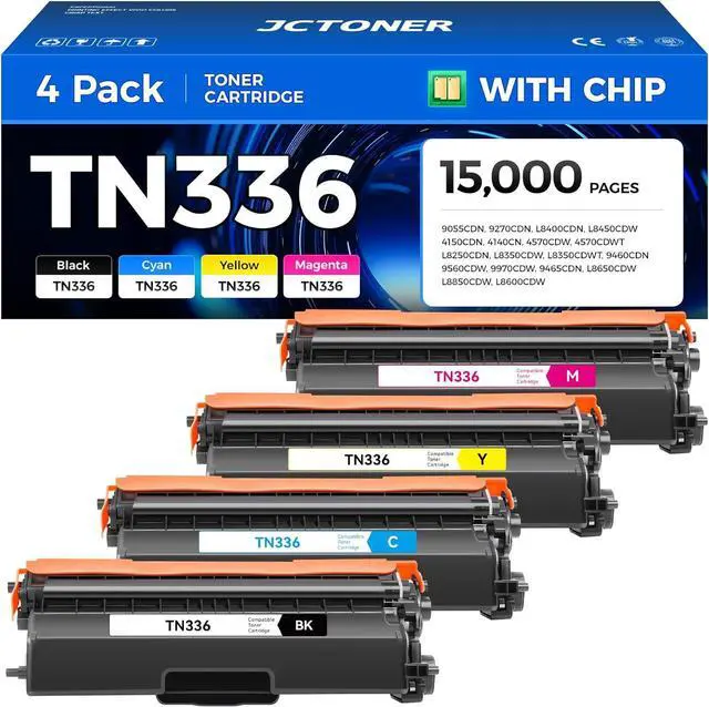 Item Name: JCTONER Compatible Replacement for TN336 TN-336 toner cartridge 4 set (with chip).