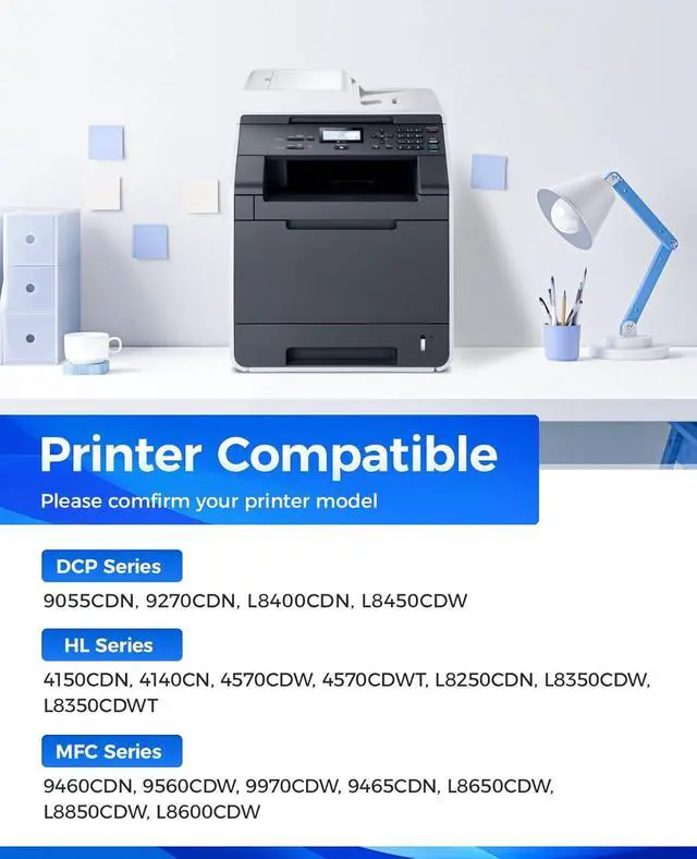 Compatible Printers: Compatible with Brother HL-4150CDN HL-4140CN HL-4570CDW HL-4570CDWT HL-L8250CDN HL-L8350CDW HL-L8350CDWT MFC-9460CDN MFC-9560CDW MFC-9970CDW MFC-9465CDN MFC-L8650CDW MFC-L8850CDW MFC-L8600CDW DCP-9055CDN DCP-9270CDN DCP-L8400CDN DCP-L8450CDW Printer.