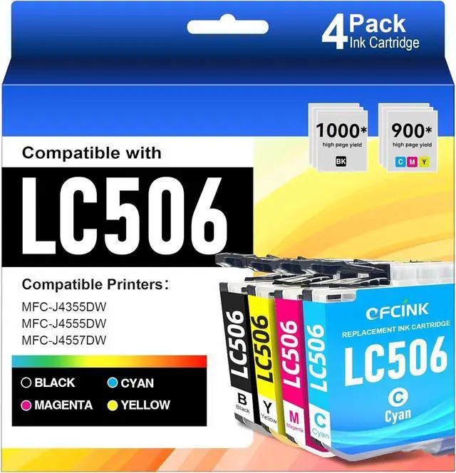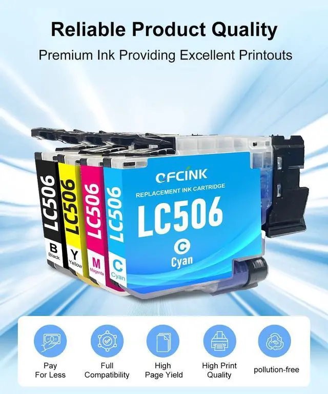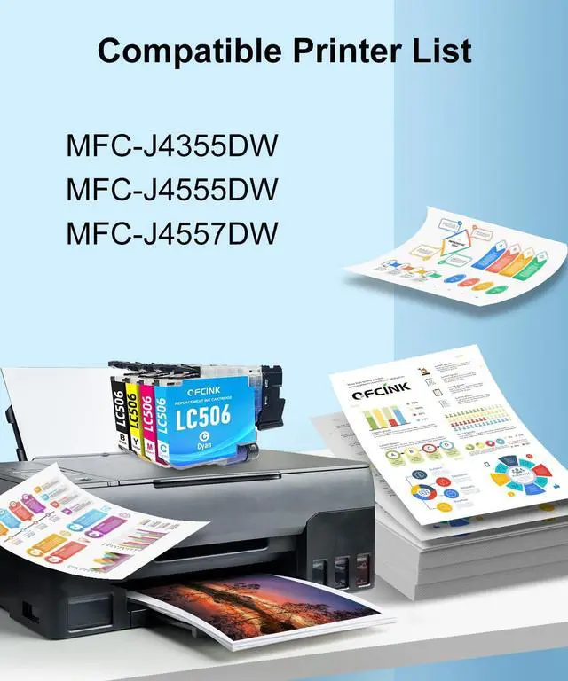 Compatible Printers: LC506 Ink Cartridges Compatible for Brother Printer MFC-J4355DW J4555DW J4557DW built-in smart chip ensures instant printer recognition, plug-and-play installation, and accurate ink level monitoring. Designed for seamless compatibility and reliable performance.