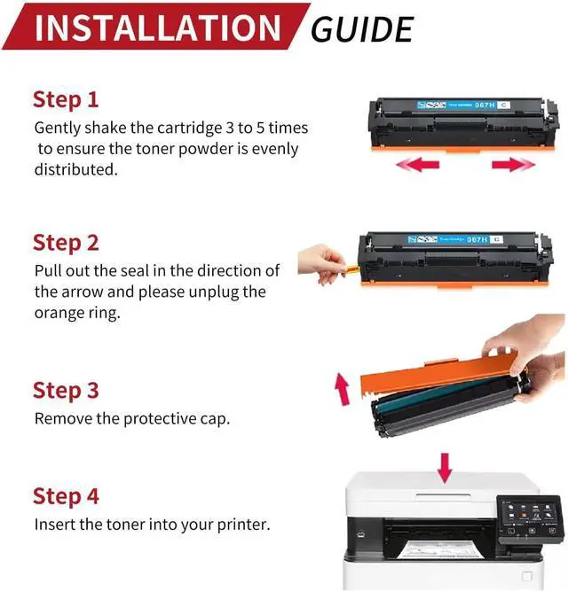 Yes, the 067 toner cartridge set features an easy installation process with four clear steps.