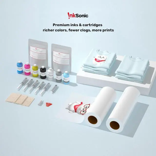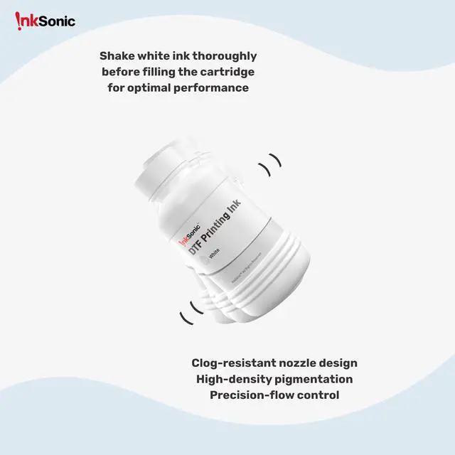 InkSonic Premium DTF Ink Store the package in a cool and dry place Effectively Clears Clogged Printheads & Protects Healthy Ones Compatible with All DTF Printers DTF Printer Application Fields The NO.1 Emerging Printer Brand