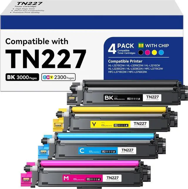 Product Item: Compatible Toner Cartridges Replacement for Brother TN227 TN227BK/C/M/Y High Yield TN 223 BK/C/M/Y Toner Cartridge Set