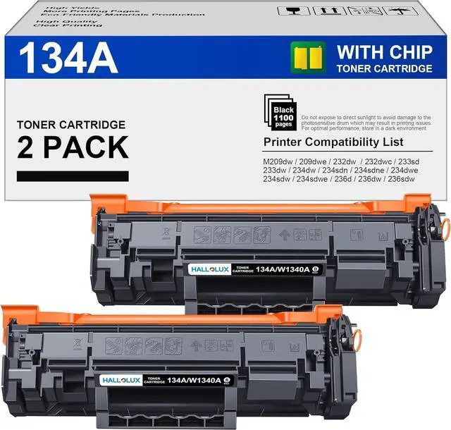 Warning: HALLOLUX for HP 134A black toner cartridge not with HP e series printers, such as the M234dwe, M234sdne, and M234sdwe.