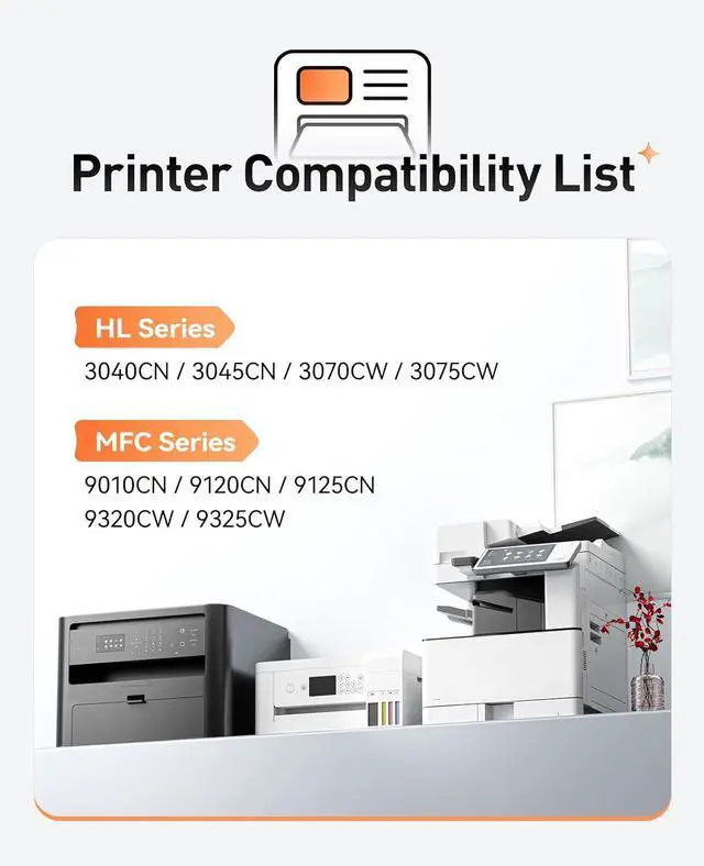 Compatible Printers: Compatible with Brother HL-3040CN HL-3045CN HL-3070CW HL-3075CW MFC-9010CN MFC-9120CN MFC-9125CN MFC-9320CW MFC-9325CW Series Printer.