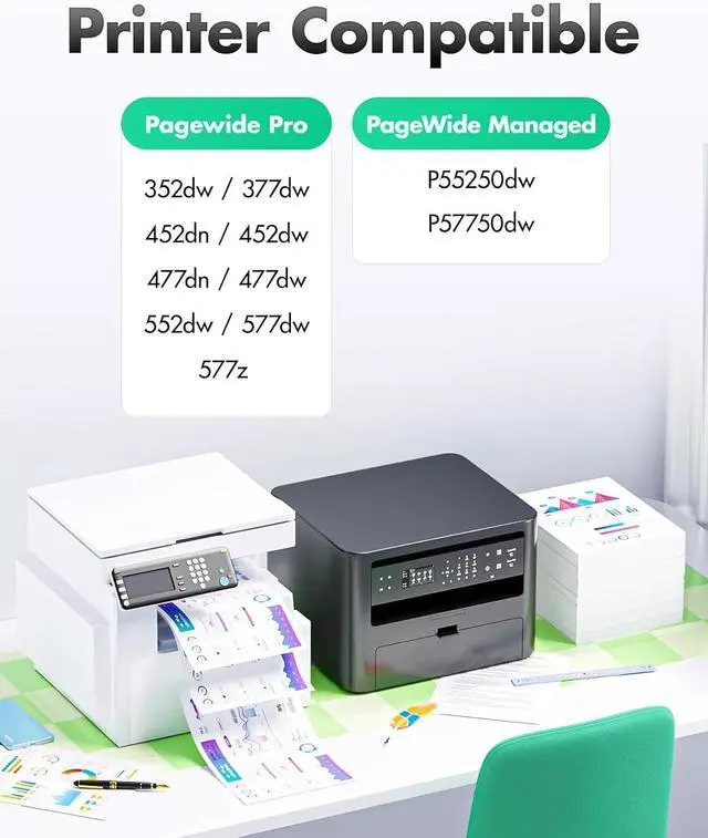 Compatible Printer: Compatible with HP Pagewide Pro 352dw, 377dw, 452dn, 452dw, Pagewide Pro 477dn, 477dw, 552dw, 577dw, 577z PageWide Managed P55250dw, P57750dw Series Printers.