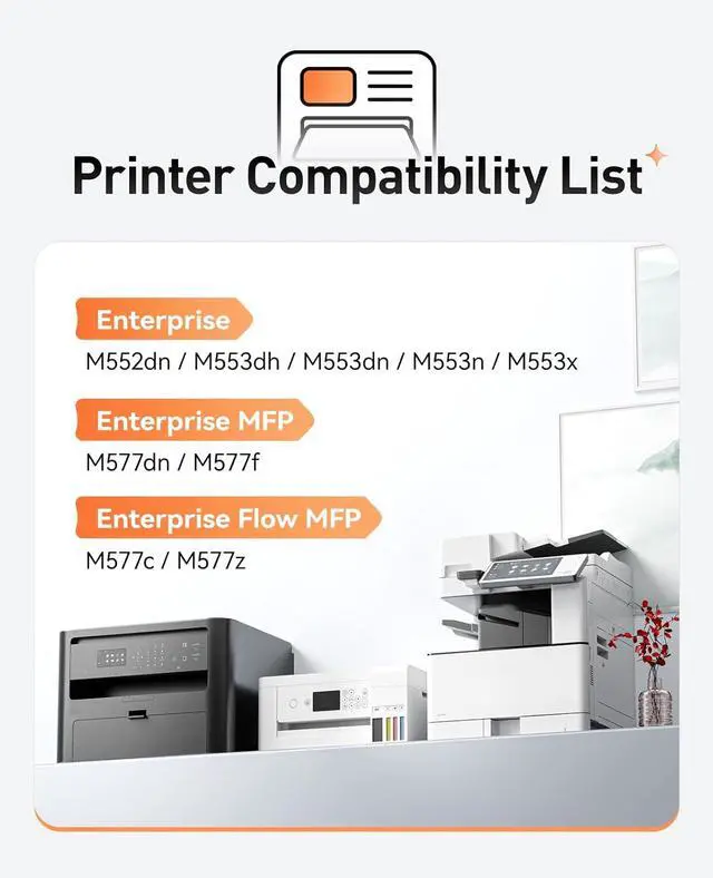 Compatible for HP Color LaserJet Enterprise Flow MFP M577c, M577z; HP Color LaserJet Enterprise M552dn, M553dh, M553dn, M553n, M553x; HP Color LaserJet Enterprise MFP M577dn, M577f Series Printer