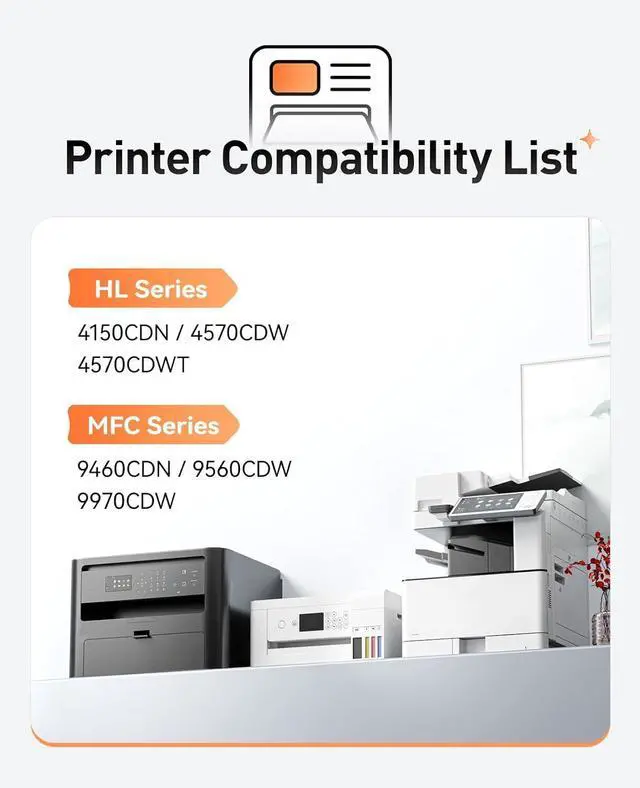 Compatible Printers: Compatible with Brother HL-4150CDN,HL-4570CDW,HL-4570CDWT Series Printer; MFC-9460CDN,MFC-9560CDW,MFC-9970CDW Series Printer.