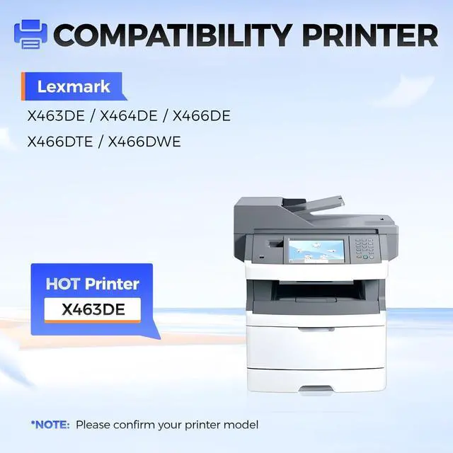 Compatible Printer: Compatible with Lexmark X463DE X464DE X466DE X466DTE X466DWE Laser Printers.
