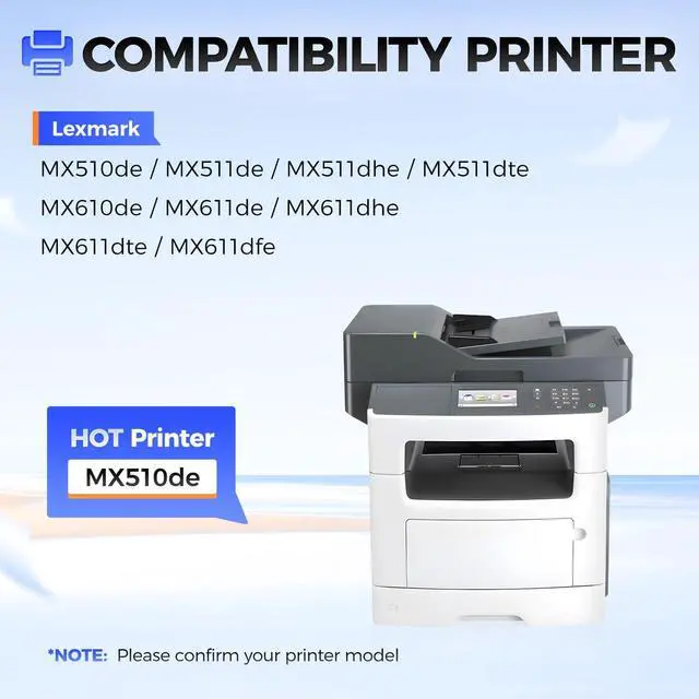 Compatible Printer: Compatible with Lexmark MX510de MX511de MX511dhe MX511dte MX610de MX611de MX611dhe MX611dte MX611dfe Laser Printers.