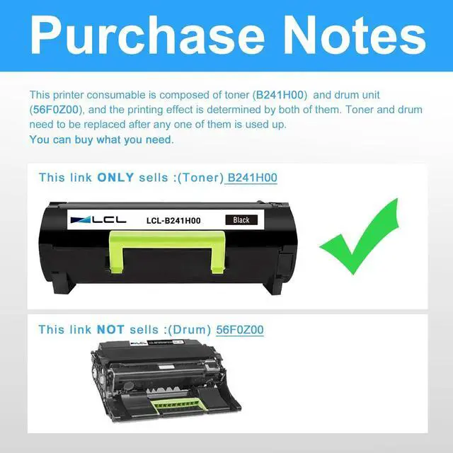 Reliable Quality: LCL B241H00 cartridge uses high quality toner, toner particle size distribution, good mobility, high transfer rate, resulting in a clear image and high gloss print effect; Printing efficiency is high, waste powder rate is low, so as to ensure sufficient page yield.