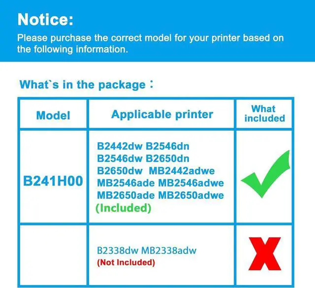 Compatible Printers: Replacement for Lexmark B2442dw B2546dn B2546dw B2650dn B2650dw MB2442adwe MB2546ade MB2546adwe MB2650ade MB2650adwe printers