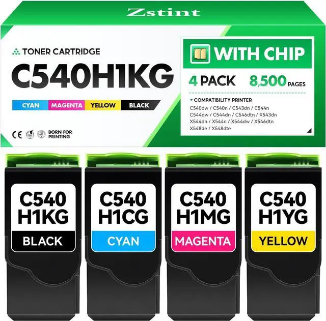 Products Name: Zstint's Compatible Replacement for Lexmark C540H1KG C540H1CG C540H1MG C540H1YG Toner Cartridge with chip.
