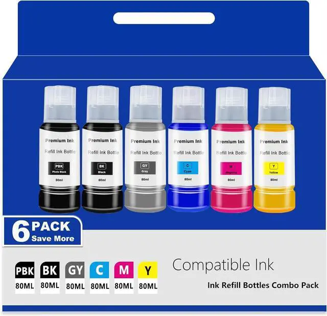 Complete 6-Color Refill Set: This pack includes six vibrant dye ink bottles: Black, Cyan, Magenta, Yellow, Photo Black, and Gray, ideal for a wide range of printing tasks from professional-quality photos to sharp, detailed documents.