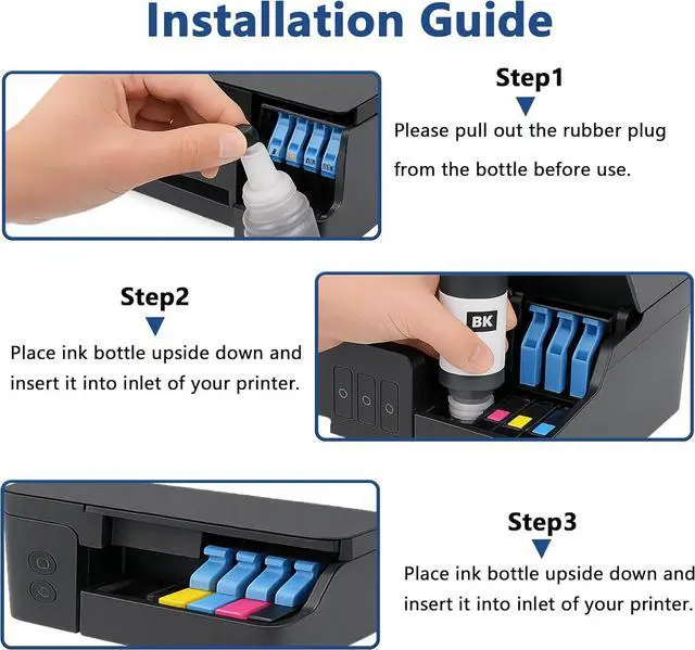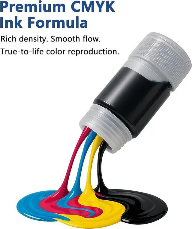 Mess-Free, Easy Refilling: Innovative auto-stop nozzle design allows precise, spill-free refilling. Simply align the bottle and refillno squeezing required, keeping your workspace clean and printer protected.