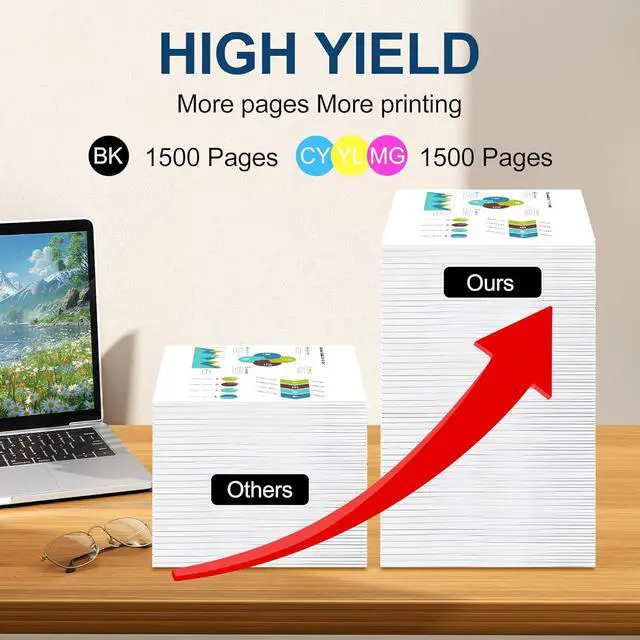 Page Yield: Up to 1,500 pages per black toner and 1,500 pages per color toner cartridge (Letter/A4, at 5% coverage)