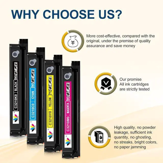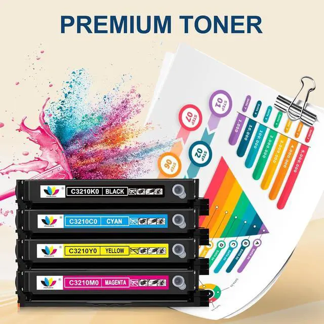 Excellent Performance: Our C3210 toner cartridges set deliver superior printing results with clear prints.