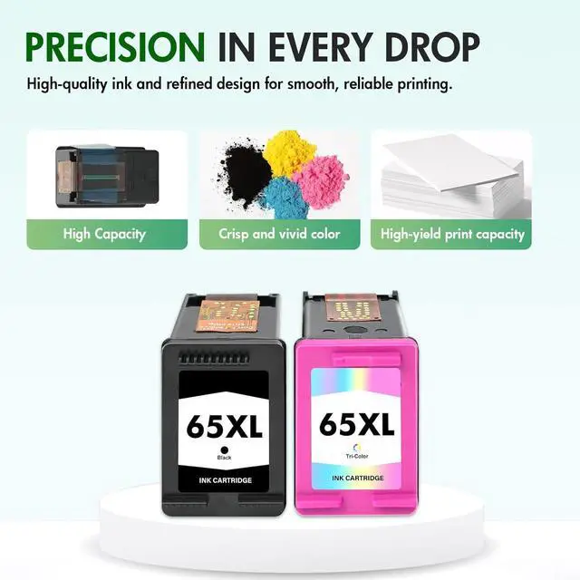 High Page Yield: It yields up to 750 pages for each 65XL Black Ink and 450 pages for each 65XL Color Ink at 5% coverage (A4e letter)