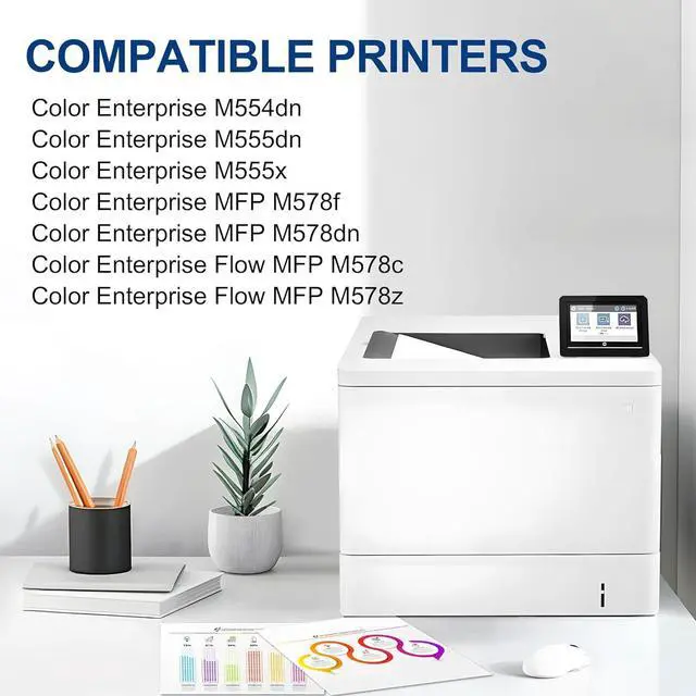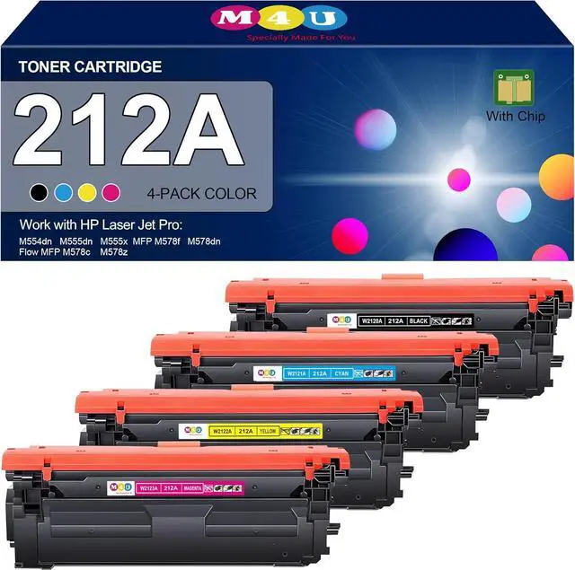 Compatible Printers: the 4 pack 212A toner cartridge are compatible for printers Enterprise Flow MFP M578c M578z Printer and Color Enterprise M555dn M554dn M555x MFP M578f M578dn