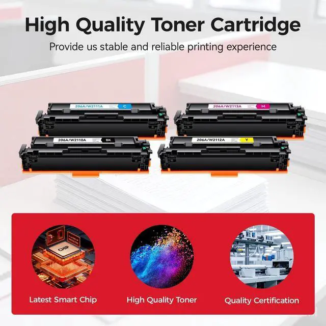Latest Chip Version: The 206A/W2110A Toner cartridges set uses the latest upgraded chip to ensure compatibility with your printer.