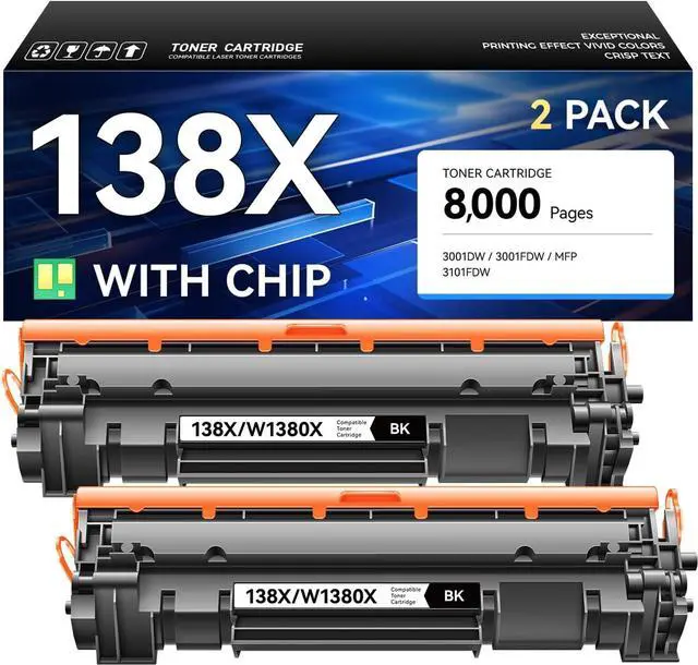 Latest Chip Version: The 138X W1380X Toner cartridges set uses the latest upgraded chip to ensure compatibility with your printer.