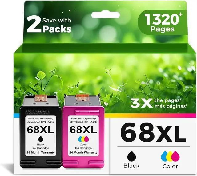 Package Includes: 2 High-yield (XL) 68XL Ink Cartridges (1 Black, 1 Tricolor) and a User Guide