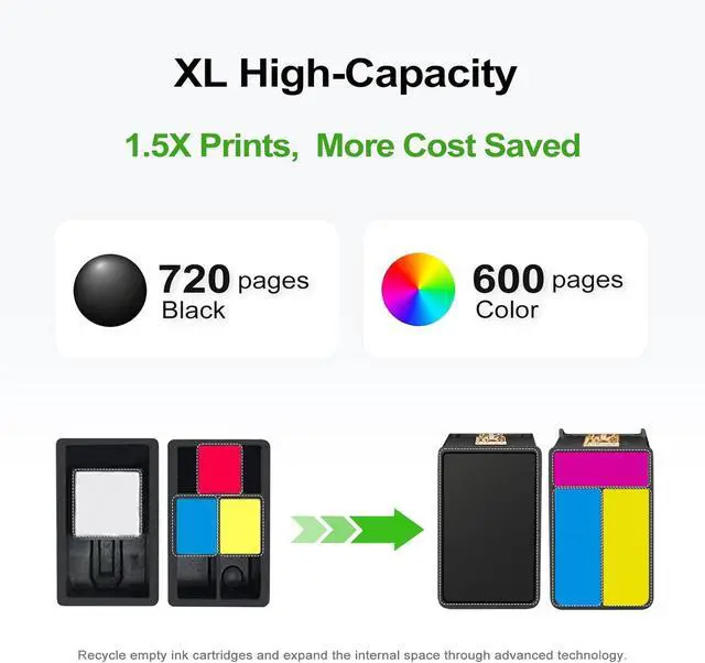 Print More with XL: Each Ankink 68XL black cartridge prints up to 720 pages, while the tri-color cartridge prints up to 600 pages (5% coverage, A4/Letter size)