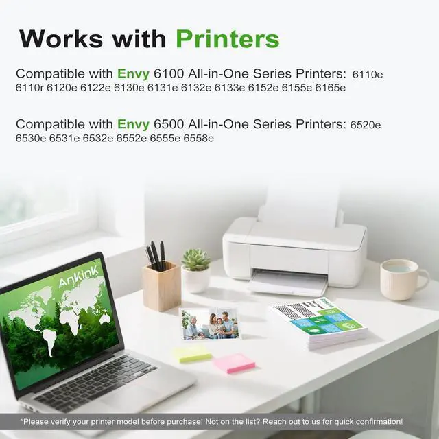 Compatible with ENVY 6100 All-in-One Series Printers: ENVY 6110e 6110r 6120e 6122e 6130e 6131e 6132e 6133e 6152e 6155e 6165e Printers