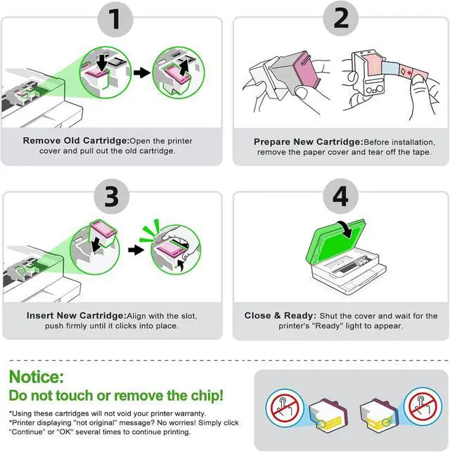 Smart Upgraded Chips: Engineered with the latest upgraded smart chips, approved by CE, REACH, ISO 9001, ISO 14001, and ISO 14067, each Ankink ink cartridge will be recognized by compatible printers quickly and display accurate ink levels. Enjoy worry-free and efficient printing