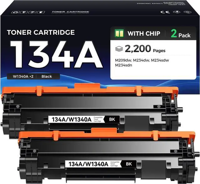 Package Contain: 2 New 134 A black toner cartridges (Total Page Yield 2,200).