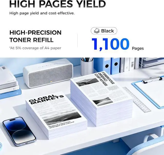 CAINK toner cartridges are ISO-9001 and ISO-14001 certified. Each toner cartridge undergoes a strict quality testing procedure, delivering excellent print quality from the first page to the last. Use our Cartridge to avoid toner leaks, premature failures or dangerous code as much as possible.