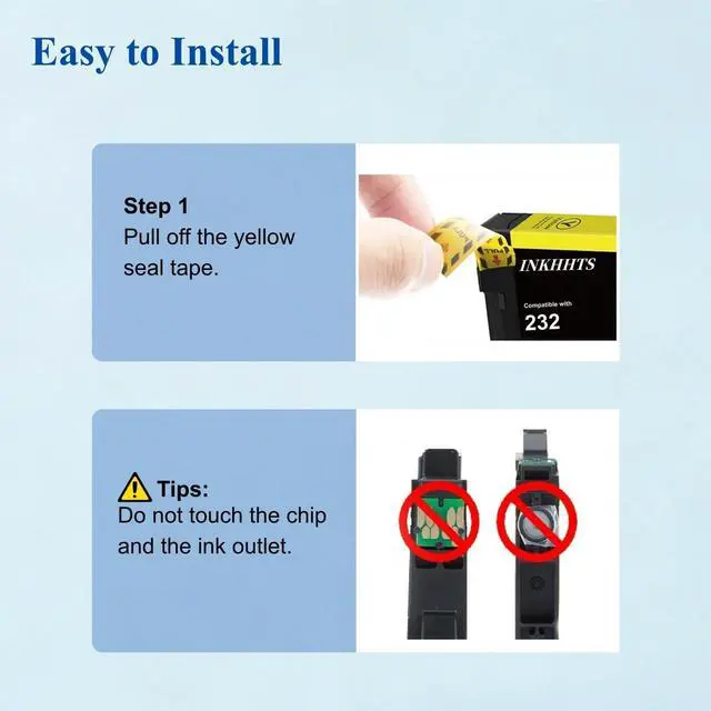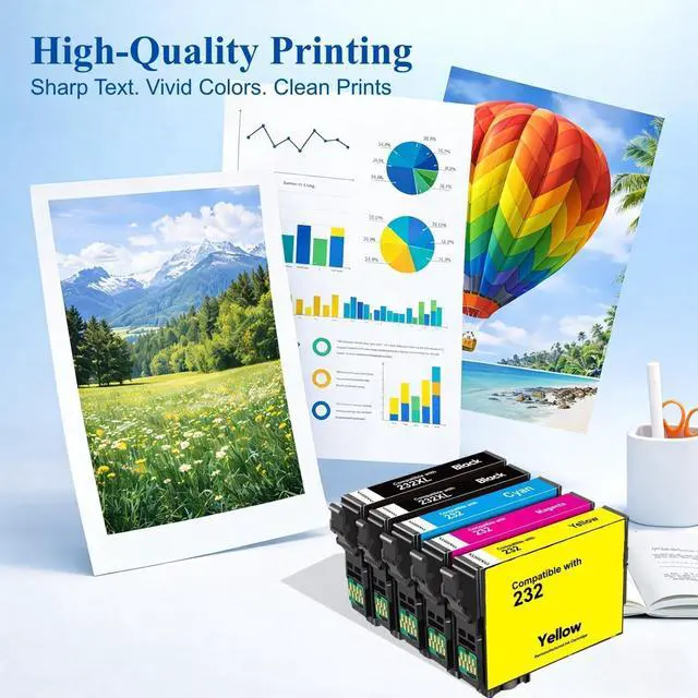 Excellent Performance: Compatible with Epson ink 232 ink cartridges deliver clear, vibrant print results with vivid images, producing sharp documents and colorful graphics for everyday printing