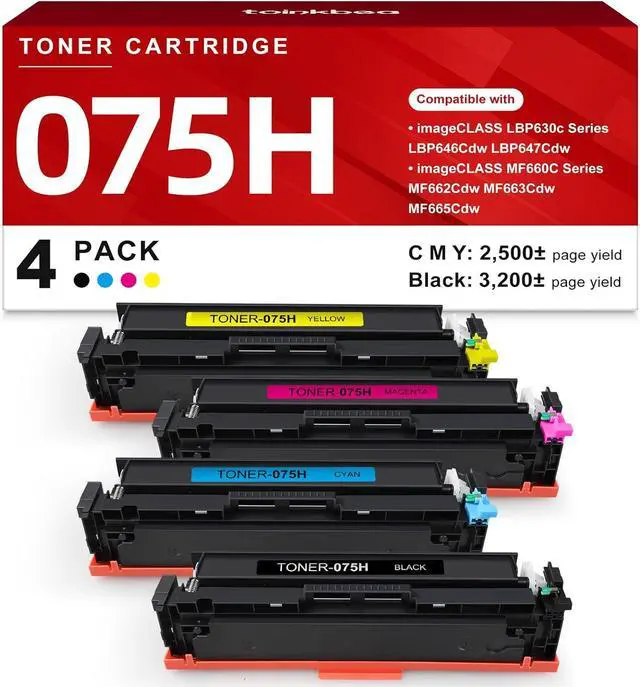 Printer Compatibility: toinkbea 075H 075 High Capacity Toner Cartridge replacement for Canon 075H Toner Cartridge Set, designed to work seamlessly with Canon imageCLASS LBP640 LBP640C LBP646Cdw LBP647Cdw MF660 MF660C MF662Cdw MF663Cdw MF665Cdw Series Printer.