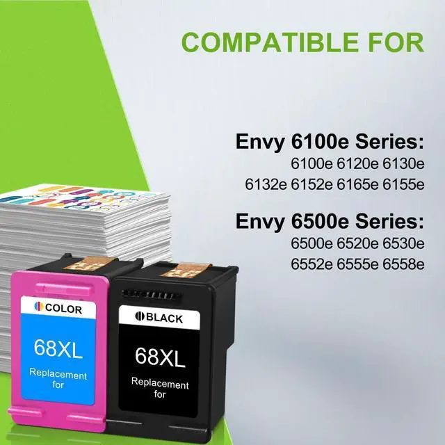 For 68XL Ink Cartridges Printer Compatibility: Envy 6100e Series: 6100e 6120e 6130e 6132e 6152e 6165e 6155e; Envy 6500e Series: 6500e 6520e 6530e 6552e 6555e 6558e