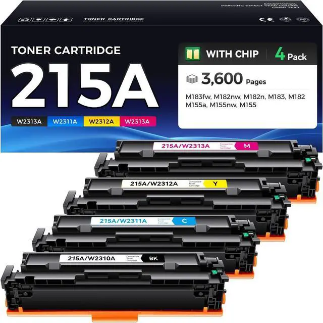 Package Contains: 4 Packs toner cartridges (215A W2310A Black / 215A W2311A Cyan / 215A W2312A Yellow / 215A W2313A Magenta).