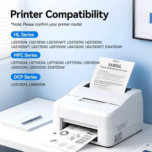 Perfect Compatibility: Compatible for Brother devices HL-L5210DN, HL-L5210DW, HL-L5210DWT, HL-L5215DW, HL-L6210DW, HL-L6210DWT, HL-L6217DW, HL-L6310DW, HL-L6415DW, HL-L6415DWT, HL-EX415DW, MFC-L5710DN, MFC-L5710DW, MFC-L5715DW, MFC-L5717DW, MFC-L5915DW, MFC-L6810DW, MFC-L6915DW, MFC-EX915DW, DCP-L5510DN, DCP-L5660DN Printer.