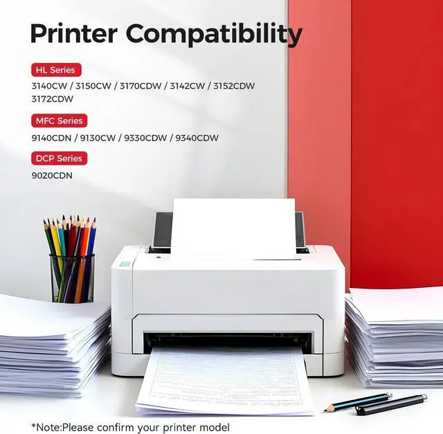 Compatible Printer: Brother DCP-9020CDN, HL-3140CW, HL-3150CW, HL-3170CDW, HL-3142CW, HL-3152CDW, HL-3172CDW, HL-3180CDW, MFC-9140CDN, MFC-9130CW, MFC-9330CDW, MFC-9340CDW Printer.