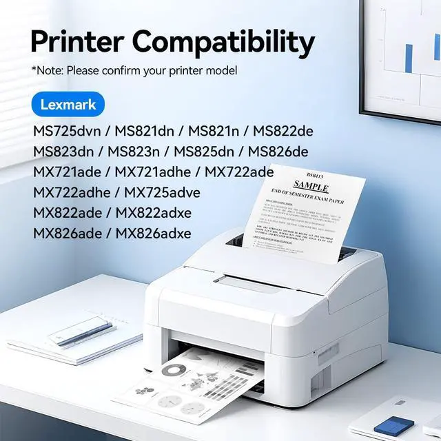 Perfect Compatibility: Compatible for Lexmark devices MS725dvn, MS821dn, MS821n, MS822de, MS823dn, MS823n, MS824de, MS825dn, MS826de, MX721ade, MX721adhe, MX722ade, MX722adhe, MX725dvn, MX822ade, MX822adxe, MX824ade, MX824adxe, MX826ade, MX826adxe Printer.