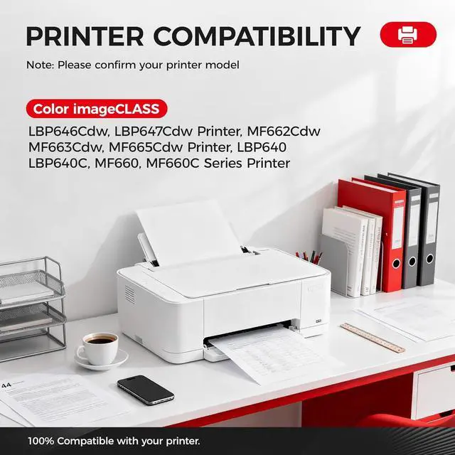 Perfect Compatibility: Compatible for Canon devices Color imageCLASS LBP646Cdw LBP647Cdw MF662Cdw MF663Cdw MF665Cdw LBP640 LBP640C MF660 MF660C Series Printer.