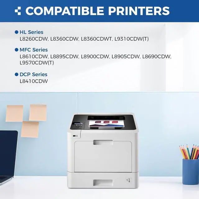 To use with: Compatible for Brother HL-L8260CDW, HL-L8360CDW HL-L8360CDWTHL-L9310CDW(T) MFC-L8610CDW, MFC-L8895CDW MFC-L8900CDW, MFC-L8905CDW MFC-L8690CDWMFC-L9570CDW(T) DCP-L8410CDW Laser Printer.