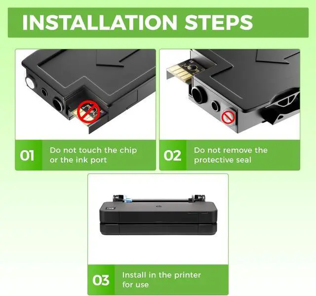 Compatible PrinterCompatible for HP DesignJet: T210, T230, T250, T630, T650HP DesignJet Studio: 24-in, Steel 24-in, 36-in, Steel 36-in Printer.