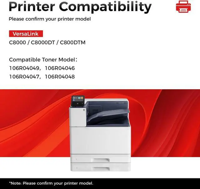Compatible Printer: Compatible for Xerox VersaLink C8000 C8000DT C800DTM series Printer. Compatible Toner Model106R04049, 106R04046, 106R04047, 106R04048.