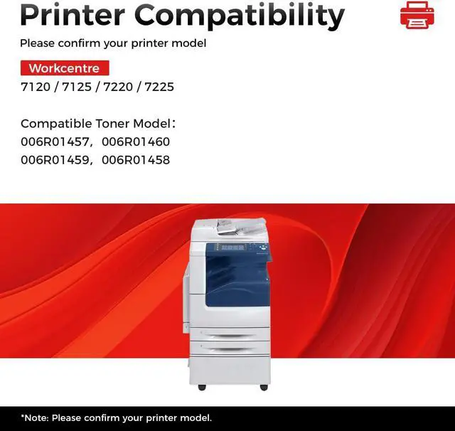 Compatible Printer: Compatible with Xerox WorkCentre 7120, Xerox WorkCentre 7125 7220 7225; Compatible Toner Model006R01457006R01460,006R01459006R01458